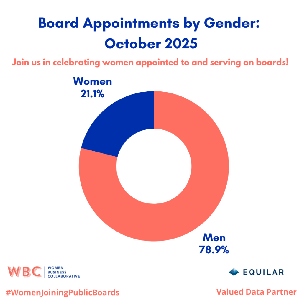 Women comprised 21.1% of new appointments to public boards of directors, with 51 women and 191 men appointed in October 2025.